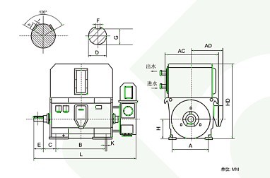 YRKS高壓電機(jī)為封閉式結(jié)構(gòu)電機(jī)頂部帶有空-水冷卻器。